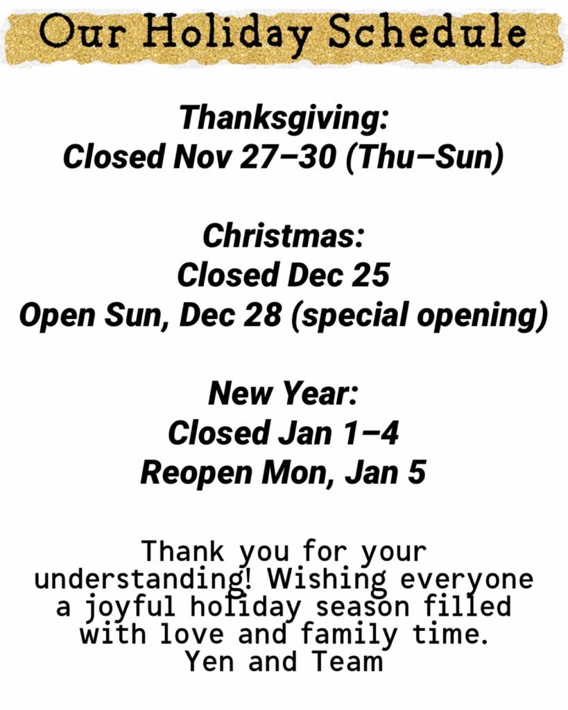 At Yen’s, your health is a top priority! We take extra steps to ensure the highest quality sanitation and cleanliness.